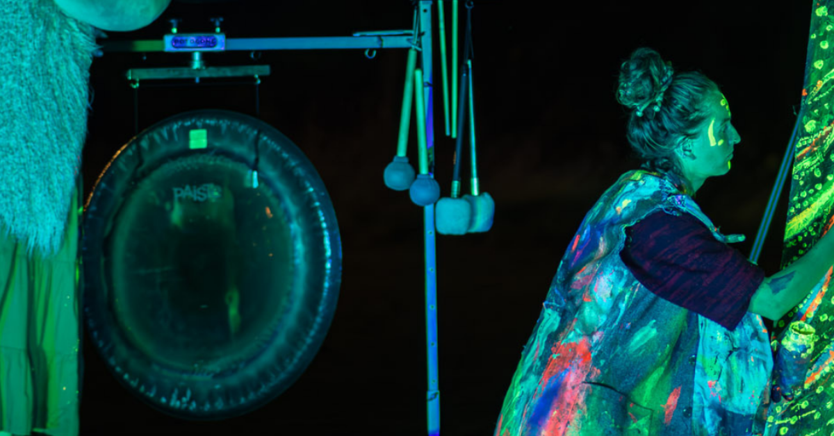 This Irish-language immersive theatre experience unfolds around a monumental 2 x 4 metre live painting, interactive projections, and musicians performing in real time. Over the course of an hour, audiences are drawn into a living, breathing canvas where ceremonial instruments intertwine with synthesisers, vast paintings come to life before your eyes, and projections blur the boundary between electronic and organic creation.