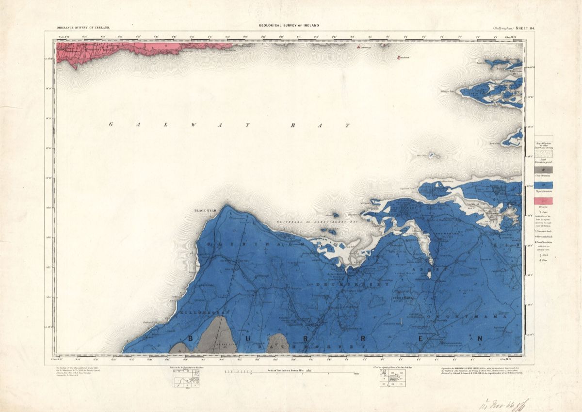 In Ireland, the promise of finding economically valuable mineral reserves in combination with a quasi philanthropic desire to improve public understanding of science within the country led to a number of attempts to survey the geological makeup of the island by a number of researchers and public bodies. Though all were working under the bureaucratic aegis of the British Empire, individual egos and questions over institutional remits often led to frayed relations between the various map-making enterprises, until the British Government established the Geological Survey of Ireland in 1845, and sent out their first field teams into the south-west counties on the eve of the Great Hunger. This history will be made present in the exhibition through a selection of maps, diagrams and other research documents.