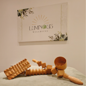 Facial treatments at Luminous Wellbeing focus on rejuvenation and balance, using natural techniques such as facial wood therapy and lymphatic drainage to reduce puffiness, improve skin tone, and enhance the skin’s natural glow. Clients are also empowered through at-home facial education sessions, where they learn how to use tools like jade rollers and gua sha to maintain results and support their skin between treatments.