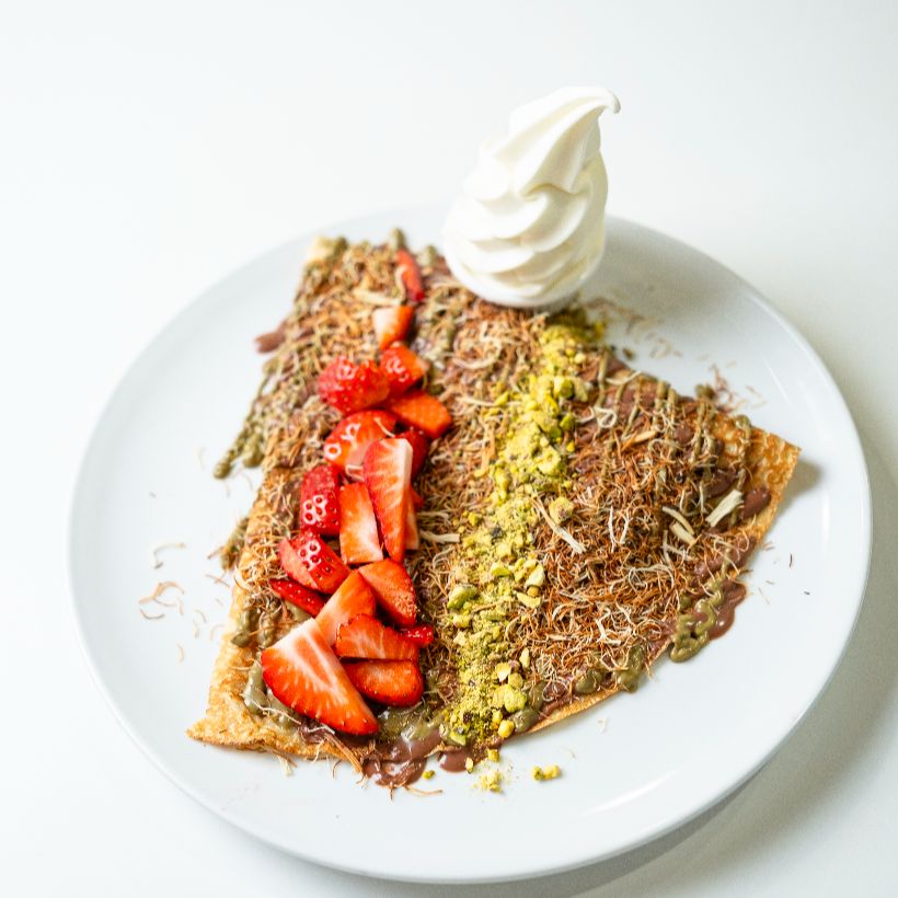 At Over the Moon, Pancake Tuesday lasts much longer than just a day, and frankly, we are over the moon about that! If you adore all things chocolate and sweet, this is the spot for you. They’ve got tons of sweet toppings available and if we had to pick just one, well, their special Dubai-chocolate pancakes with a mix of fresh strawberries, milk chocolate, and that incredible pistachio drizzle is out of this world.